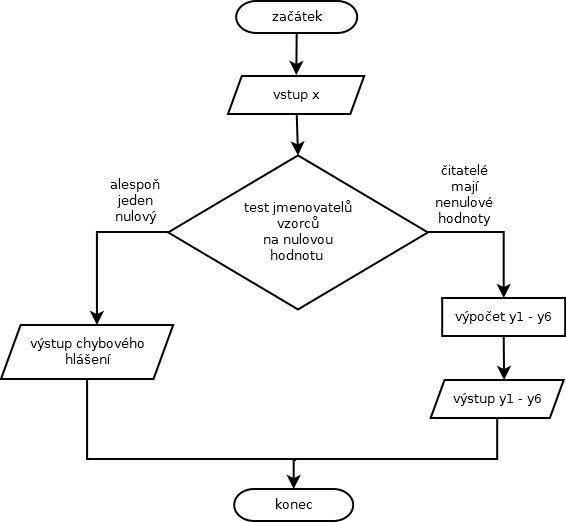 Pomocí standardních funkcí programovacího jazyku vypočítat z hodnoty x hodnoty y1 - y6.