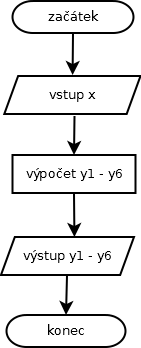Pomocí standardních funkcí programovacího jazyku vypočítat z hodnoty x hodnoty y1 - y6.