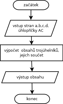 Sestavte program, který ze zadaných stran a úhlopříčky AC obecného čtyřúhelníku vypočte jeho obsah.